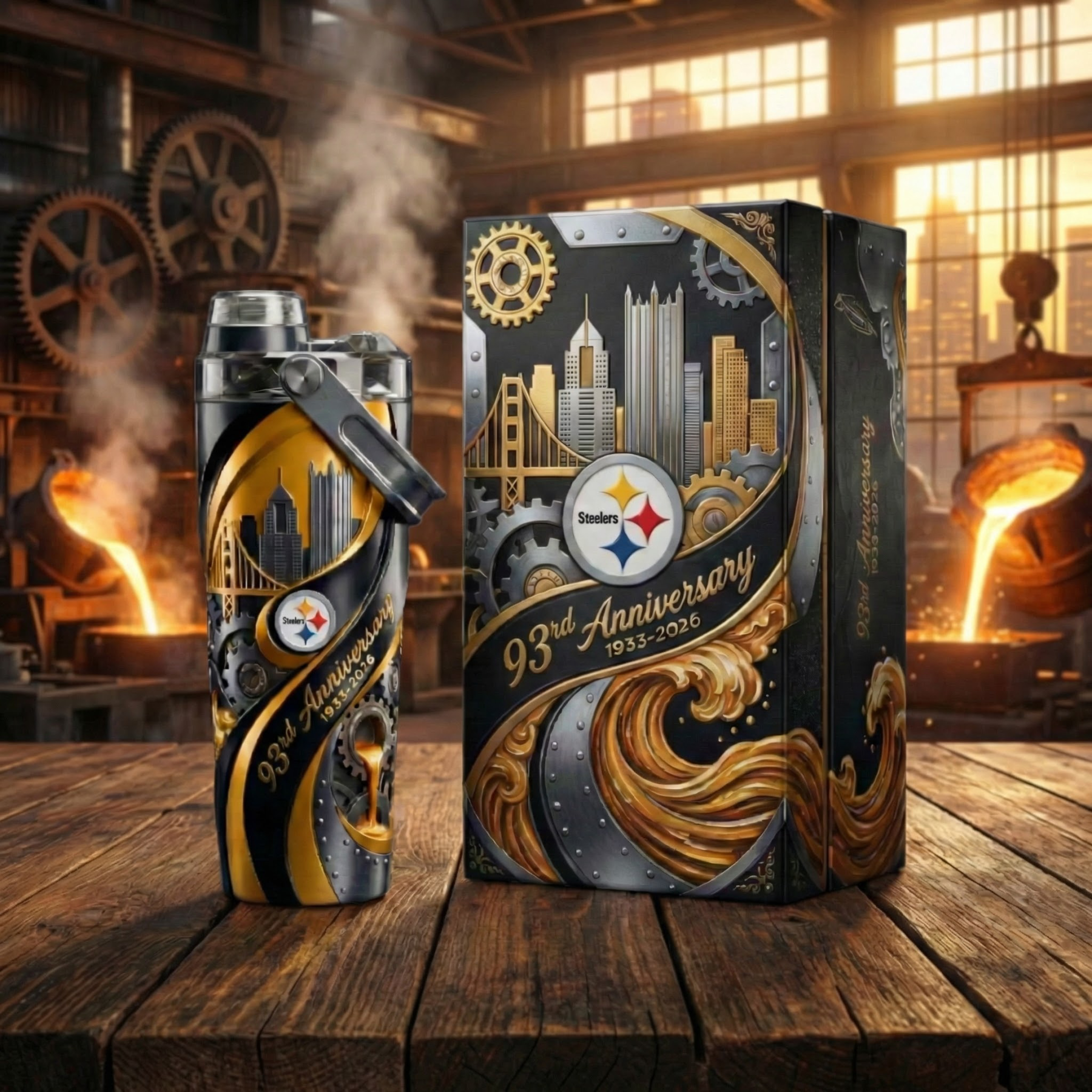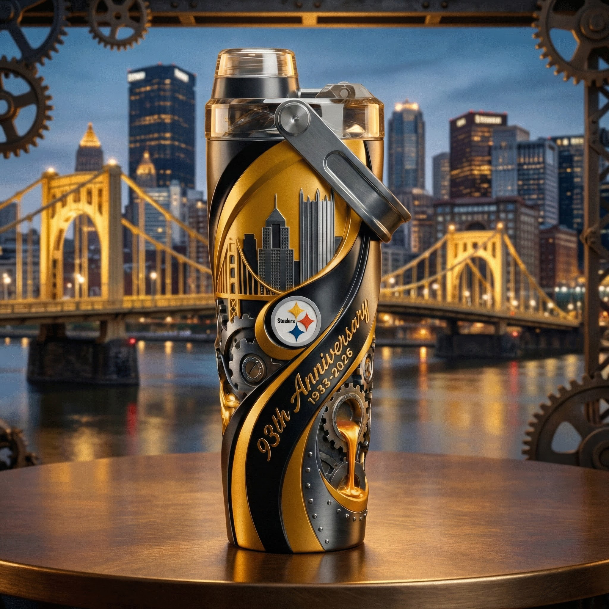 Celebrate 93 years of strength, tradition, and championship legacy with this Steelers 93rd Anniversary Insulated Water Bottle. Inspired by Pittsburgh’s industrial heritage, this collectible design fuses rugged steampunk aesthetics with premium modern functionality—built for true fans who value durability, performance, and pride.