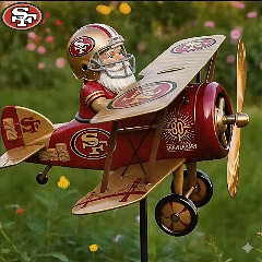 Celebrate your team spirit with this one-of-a-kind garden windmill! Featuring a charming gnome in a vintage pilot's outfit, this windmill is decorated with the iconic San Francisco 49ers colors and logos. The design celebrates the 49ers' 80th anniversary with stunning details like a golden propeller and intricate artwork of the Golden Gate Bridge on the tail. Whether you’re an avid fan or looking for a unique outdoor decoration, this windmill will add personality and motion to any garden, yard, or porch.