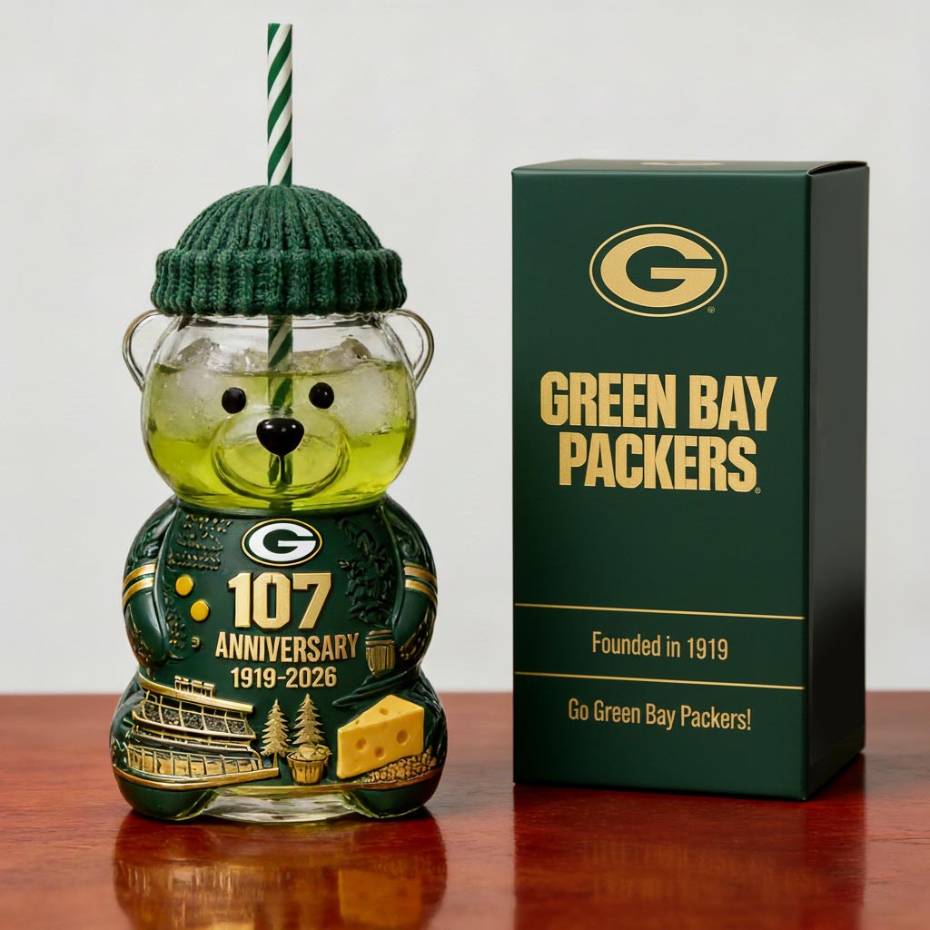 Celebrate the Green Bay Packers’ storied history with this unique and collectible bear-shaped drinkware, crafted to honor the team’s 107th anniversary (1919-2026). This adorable bear-shaped cup features classic Packers colors, intricate detailing, and a commemorative design that highlights iconic symbols from the team’s legacy.